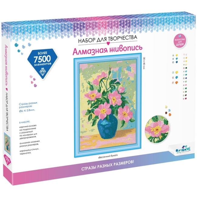 Алмазная мозаика Origami "Разноразмерная мозаика. Весенний букет", 30*40см, на подрамнике