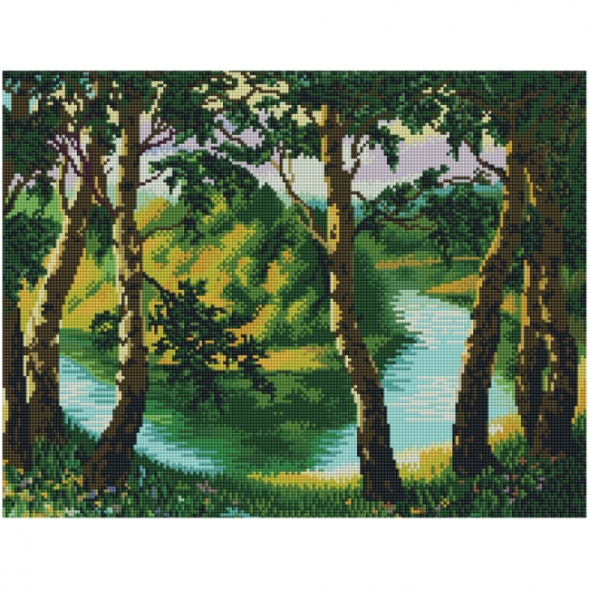 Алмазная мозаика ТРИ СОВЫ "Летний пейзаж", 40*50см, холст на деревянном подрамнике, картонная коробка с пластиковой ручкой