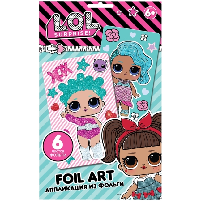 аппликация из фольги LOL - прекрасное средство развития воображения, аккуратности и терпения у ребенка, а также мелкой моторики, внимания и мышления. Собери всех L.O.L. Surprise из коллекции Foil Art. Нанеси цветную фольгу на прически, одежду и аксессуары - любимые героини засияют. Комплектация: 2 картинки с клеевой основой (11*17 см), 6 листов разноцветной фольги, стилус.