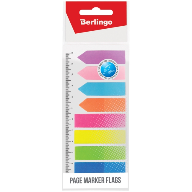 Флажки-закладки Berlingo, 45*12/42*12мм, 25л*8 неоновых цветов, с линейкой, европодвес