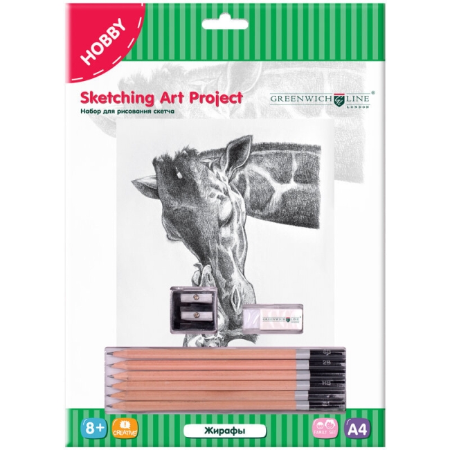 Набор для рисования скетча Greenwich Line "Жирафы", A4, карандаши, ластик, точилка, картон