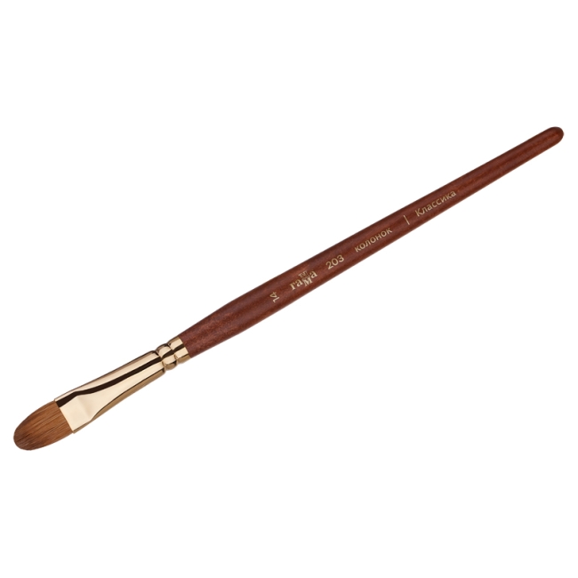 Художественные кисти ГАММА изготовлены из натурального ворса колонка. Изделия предназначены для работы с акварельными, гуашевыми и акриловыми красками. В масляной живописи колонок используют для нанесения гладких, ровных и точных мазков. Волос колонка обладает уникальными свойствами – он одновременно длинный, упругий, эластичный и прочный. Благодаря большей, чем у белки, упругости, кисть позволяет лучше контролировать мазок. Кисть вяжут из волосков разной длины, что позволяет при соприкосновении наполненной кисти с поверхностью создать капиллярный поток краски. Важно проводить своевременный и правильный уход за кистью: очищать от краски до того как она засохнет. Цветная матовая ручка выполнена из дерева, бесшовная никелированная обойма придаёт изысканность серии кистей «Классика». • Номер: 14, • Форма кисти: плоскоовальная, • Волос: колонок, • Тип ручки: короткая, • Выставка: 17,5, • Ширина волосяного пучка: 12,7.