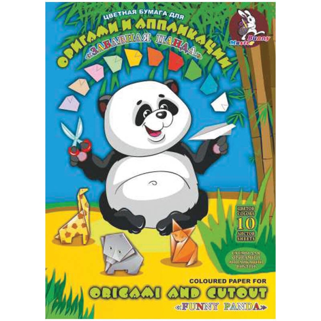 Цветная бумага для оригами и аппликации Лилия Холдинг "Забавная панда", A4, 10л., 10цв., в папке