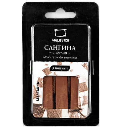 Материалы для художественной графики Малевичъ обладают высокой кроющей способностью, работать ими легко и приятно, пигмент мягко ложится на бумагу, достаточно легкого штриха. Мелки квадратной формы позволяют закрывать большую площадь и делать тонкие штрихи. Набор из трех мелков традиционных в графике оттенков. Отлично подходит для набросков и портретов.