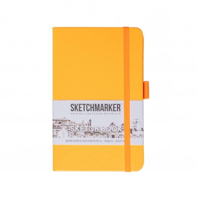 Блокнот для зарисовок Sketchmarker 140г/кв.м 9*14см 80л твердая обложка Неоновый апельсин